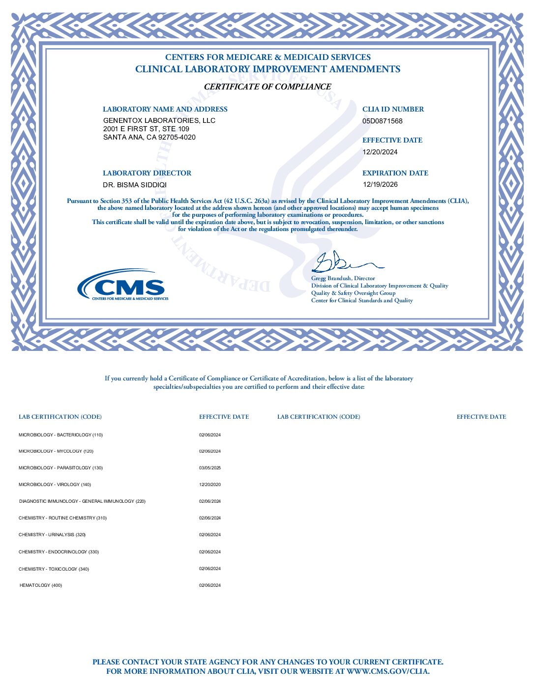 FOR MORE INFORMATION ABOUT CLIA, VISIT OUR WEBSITE AT WWW.CMS.GOV/CLIA OR CONTACT YOUR LOCAL STATE AGENCY. PLEASE SEE THE REVERSE FOR